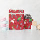De mignons chiens de Noël dans des tenues de vacances festives. Les Greyhounds italiens avec de nombreuses couleurs de manteau portent des chapeaux de Père Noël, des bois, des chandails sur un arrière - plan rouge, rose et bleu clair avec des ornements éparpillés papier d'emballage.