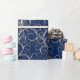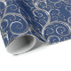 Papier d'emballage cadeau de vacances avec un joli tourbillon de couleur argent imprimé sur une couleur arrière - plan bleu profond. Choisissez votre couleur arrière - plan.