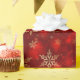 Papier d'emballage cadeau de vacances avec un joli imprimé de flocons de neige rouge et or. Customisez ce papier ou achetez tel quel.