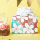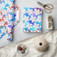 Ce papier d'emballage festif est amusant et amusant avec beaucoup de puissance de fleurs. Les petites fleurs blanches sont disposées sur un arrière - plan coloré d'aquarelle composé de bleus et de rouges. Ce design gai est parfait pour toutes les occasions.