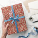 Cute, le papier-cadeau comporte des flocons de neige sur un arrière - plan rouge, ce qui le rend parfait pour les fêtes ou les anniversaires d'hiver. Une étiquette cadeau avec le même design est également disponible!