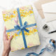 Papier d'emballage personnalisé au design floral jaune. Ajoutez la couleur arrière - plan de votre goût.