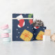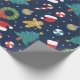 Enveloppez vos cadeaux avec une bonne humeur de vacances en utilisant notre **Jolly Jumble Wrapping Paper** ! Plein de festivités, ce design présente des couronnes, des cadeaux, des ornements, des hommes en pain d'épice, des arbres de Noël, des bas, des chapeaux de Père Noël et des sucres de canne éparpillés dans un riche arrière - plan bleu foncé. Parfait pour ajouter une touche ludique et joyeuse à vos cadeaux de vacances.