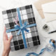 Un papier d'emballage conçu avec un motif en plaid noir et blanc de grande taille. Customisez le arrière - plan blanc entre autres options.