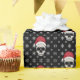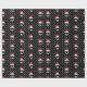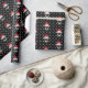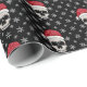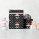 Le papier d'emballage alt parfait avec un crâne avec chapeau santa détaillé posé sur un arrière - plan noir rempli de flocons de neige. Voir la coordination des articles dans notre boutique, Enchanted Finch