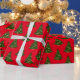 Papier d'emballage cadeau de vacances en couleur arrière - plan rouge avec une impression festive d'arbre de Noël. Customisez ce papier ou achetez tel quel.