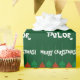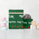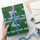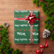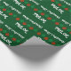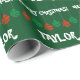 Papier d'emballage brillant avec nom personnalisé. Rouge et vert Joyeux Noël lumières d'emballage papier pour hommes femmes et enfants. Conception de vacances joueuse avec des boules d'ampoules colorées suspendues et des saisons personnalisées message de bienvenue. Personnalisable avec le nom de l'adulte ou de l'enfant. Un cadeau amusant avec des décorations de Noël. Vert foncé ou couleur arrière - plan personnalisée. Lettres de typographie amusantes.