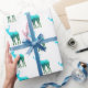 Ce papier d'emballage cadeau est présenté en blanc avec une oreille de wapiti/cerf bleu à vert avec leurs bois. imprimé répétitif. Customisez cet objet ou achetez comme indiqué. Image stock avec l'aimable autorisation de www.freepik.com