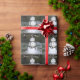 La Dame des neiges enjouée dans la nuit d'hiver avec des rochers pour les yeux, le nez et les boutons, des branches pour le sourire et les bras, des branches d'épicéa pour le foulard et la robe, et un casquette de coquillages et de buissons verts. Texte disant, Bonnes Fêtes dans une couleur de police blanche. Gardez le dicton, ou PERSONNALISEZ la zone de texte et insérez VOTRE propre message. Beau papier d'emballage pour les cadeaux de Noël spéciaux pour la famille et les amis. Photographie originale © TamiraZDesigns.