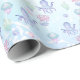 Fête d'anniversaire à thème nautique Papier à envelopper avec des illustrations du fond marin, pieuvre mignonne, adorable méduse et une queue magique de sirène.