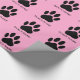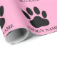 Les empreintes de chien. Papier d'emballage customisé pour les cadeaux de chien. Couleur noire sur un arrière - plan rose. Modifiez le nom du chien pour personnaliser ce papier d'emballage.