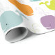 Motif adorable avec des baleines colorées dans les tons violet, bleu, vert et orange.