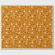 Papier enveloppant avec un design minimaliste moderne pour Halloween, un motif de silhouettes de crânes, fantômes, toiles, une silhouette de chat, citrouilles sur un arrière - plan orange.