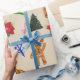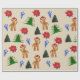 Vacances d'hiver papier d'emballage avec biscuit pain gingembre, fleurs, pins.Couleur arrière - plan personnalisée.