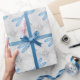 Envelopper les cadeaux pour la mariée et le marié avec un rouleau de papier Mariage de dragonfly bleu. Le papier à envelopper présente une libellule vibrante contre une élégante vigne florale et un arrière - plan gris damassé. Papeterie mariage supplémentaire et cadeaux disponibles avec ce design aussi.