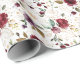 Papier d'emballage à motif floral de rose bordeaux et vin avec contour doré pour toutes les occasions.
