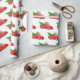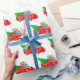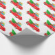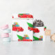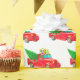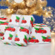 Papier à envelopper montré dans un camion rouge de Noël festif et cadeaux avec imprimé arbre. Customisez cet objet ou achetez tel quel. Image stock