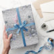 Cadeau Papier de Noël Papier bleu Arbre Argent Coeurs