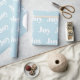 Ce papier d'emballage moderne de Noël met en valeur le mot "Joy" dans une typographie blanche et audacieuse contre un arrière - plan bleu pâle, offrant un choix simple mais élégant pour les vacances d'hiver.
