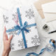 Un simple motif de flocon de neige à parties scintillant argentée et un arrière - plan blanc décorent ce papier d'emballage. Amusant pour les vacances de Noël. Conçu pour vous par Blackberry Boulevard.