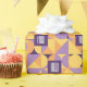 Caractérisé par des motifs géométriques dans des teintes apaisantes de violet, d'orange et de jaune, ce design apporte une touche sophistiquée et nostalgique à votre jour spécial.