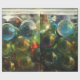 Photographie transformée en photoart des marbres en verre multicolores dans un pot en verre vert. Papier d'emballage polyvalent. Autocollants assortis Look for !