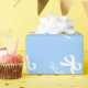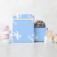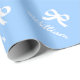 Papier d'emballage à noeud ruban personnalisé pour baby shower ou 1er anniversaire. Design élégant avec nom d'enfant. Couleur arrière - plan personnalisable, par exemple. bleu pastel clair pour bébé garçon.