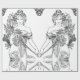 Image Art nouveau Alphonse Mucha d'une femme en robe tenant des fleurs. Il se fait dans un grand motif en miroir en noir et blanc. Pour l'artisanat ou les cadeaux.