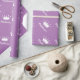 Papier d'emballage princesse violet et blanc lavande personnalisé pour baby shower girlie ou 1er anniversaire. Elégant dessin en papier tiara avec le nom de l'enfant. Couleur arrière - plan personnalisable, par exemple. rose pastel clair pour petite fille. Motif d'enveloppement cadeau mignon pour nouveau bébé et maman. Un design chic et branché pour les enfants nouveau-nés.