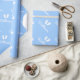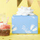 Papier d'emballage bleu bébé pieds avec nom de garçon personnalisé. Idéal pour les cadeaux originaux de baby shower party. Empreintes adorables de l'enfant. Un design neutre. Changez de couleur pour les filles.
