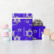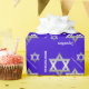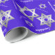 Batte de bleu assez royal ou papier d'emballage de Mitzvah de barre, avec des graphiques des étoiles de David argentées de ton et des félicitations blanches de lecture des textes. Personnalisez le texte pour lire ce que vous préférez.