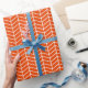 Papier à envelopper Chevron, blanc sur orange vif. Customisez la couleur orange vif de l'arrière - plan parmi d'autres options.