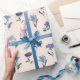 Papier d'enveloppement Floral d'anniversaire en bleu clair bleu foncé vert.