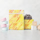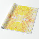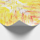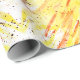 Papier d'emballage d'anniversaire coloré pour la fête de vacances avec une aquarelle abstraite que j'ai fait avec une palette de couleurs chaudes de jaune, orange et rouge vif, plus quelques points noirs fantaisistes.