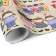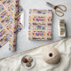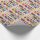 Le papier d'emballage d'anniversaire de l'anniversaire de cette fille mignonne comporte un arrière - plan coloré par sable, le texte stylisé coloré que c'est une fête d'anniversaire, un groupe de 3 jeunes filles. Deux dessus et pantalons assortis de port, on portant une robe se tenant devant les bulles et les ballons roses. Perfectionnez pour envelopper des cadeaux de jour d'anniversaire. Choisissez vos médias et taille de papier d'emballage.