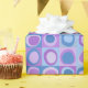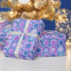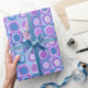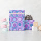 papier d'emballage en motif extensible de carrés abstraits et de blobs, tons bleu et lavande