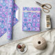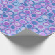 papier d'emballage en motif extensible de carrés abstraits et de blobs, tons bleu et lavande