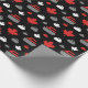 Papier d'emballage comportant une feuille d'érable et courbant le motif de roche en rouge, le blanc et le gris sur l'arrière - plan noir. Perfectionnez pour des bigoudis et des fans de bordage.