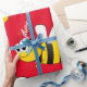 Papier d'emballage de bourdon sur un arrière - plan rouge, nobodies allant manquer votre cadeau !