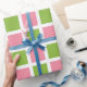 Papier d'emballage de carrés de rose vert pomme et saumoné