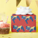 Cheval bleu de Dala sur un arrière - plan rouge. Ruban coordonné disponible.