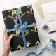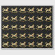 Papier d'emballage de Noël avec les beaux chevaux de basculage d'or qui sont décorés des éléments de conception de vacances comprenant un arbre de Noël, une guirlande, et des cloches de vacances. Enveloppe de cadeau vos prsents dans le style, style de vacances.