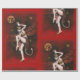 Ce papier d'emballage est illustré avec une danseuse vintage de dame de diable. L'arrière - plan est rouge avec une lune faite face par crâne et se tient le premier rôle.