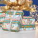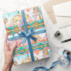 l'enveloppe de cadeau dans des tons en pastel de beau désert comportant les animaux doux de carrousel de sud-ouest, buffle, a peint le poney, et le coyote. Les bandes géométriques séparent les rayures de carrousel.