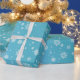 Papier d'emballage de flocons de neige métalliques turquoises d'effet