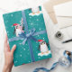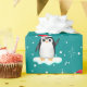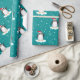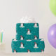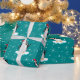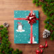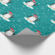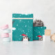 Célébrez la saison des vacances de cette année en employant ce papier d'emballage de flottement de fête de pingouin de Père Noël pour présenter vos cadeaux. Les caractéristiques de conception un motif de répétition avec des pingouins flottant sur des gros morceaux de glace, habillés dans des casquettes de Père Noël. L'arrière - plan vient en turquoise avec des flocons de neige.
