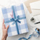 Papier d'emballage de guingan bleu-clair et blanc de plaid