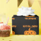 Papier d'emballage fait sur commande de Halloween avec la tête découpée de citrouille. Conception noire et orange de Jack-o'-lantern avec le nom de famille personnalisé. Approvisionnements et accessoires de partie d'amusement pour des adultes et des enfants. Enveloppe de cadeau découpée de visage de citrouille. Changez la quantité pour obtenir le prix en vrac le meilleur marché.