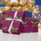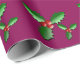 Le papier d'emballage montré avec un arrière - plan de couleur de prune avec un houx de fête de vacances impriment. Customisez cet article ou l'achetez comme est.
