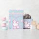 Ce motif de papier d'emballage cadeau comporte les chiens de caniche mignons de jouet qui ont été toilettés et a les empreintes de pattes en forme de coeur. Rose et blanc sur un arrière - plan bleu-clair. Grand pour des enfants et des amoureux de les chiens.